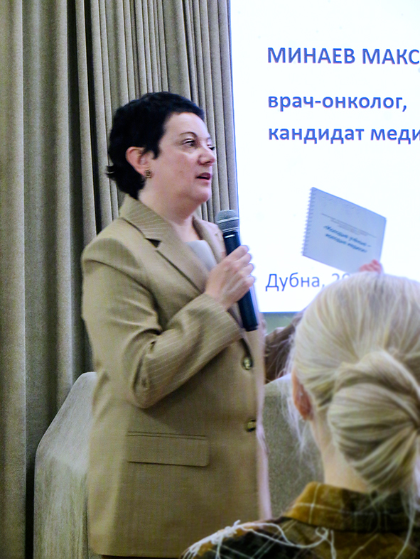 Семинар ОМУС Союз науки и медицины15 апреля в Доме ученых ОИЯИ на семинаре Объединения молодых ученых и специалистов выступил врач-онколог кандидат медицинских наук М. С. Минаев с докладом «Персонифицированная лучевая терапия: на стыке медицины, биологии и физики».