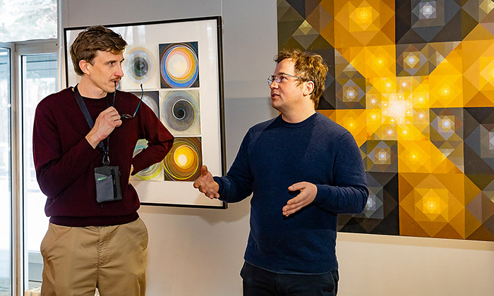 Особую значимость события для культурной жизни России подчеркнул специальный представитель Президента РФ по международному культурному сотрудничеству, лауреат премии OGANESSON Михаил Швыдкой. Он обратил внимание на уникальную способность новой площадки объединять интеллектуальную элиту: по его словам, собрать в одном зале выдающихся ученых и директоров ведущих музеев - задача, трудновыполнимая даже в Москве. "Образование и культура - это, как правило, история о том, что уже общепринято и известно. А наука и искусство - это всегда прорыв в то, что еще не познано, - отметил Михаил Швыдкой. - Реализация такого проекта в Дубне чрезвычайно важна, поскольку современное искусство, как и фундаментальная наука, стремится к неизведанным измерениям жизни". Директор Объединенного института академик РАН Григорий Трубников акцентировал внимание на том, что появление галереи именно в стенах Дома международных совещаний ОИЯИ - шаг закономерный и глубоко символичный. "Дом международных совещаний всегда был пространством диалога. Теперь к языку науки здесь прибавился еще один универсальный язык, который не требует перевода - язык художественных образов, - отметил Григорий Трубников. - Открыть галерею выставкой выдающегося Франциско Инфантэ - большая честь для нас. Мы благодарны художнику за доверие". Франциско Инфантэ, приветствуя гостей галереи, выразил искреннюю признательность организаторам выставки и зрителям. В своем выступлении он затронул тему различия между научным и художественным восприятием реальности. По мнению классика кинетизма, несмотря на общность цели - постижение мира, - инструменты физика и художника могут быть фундаментально иными. "Я всегда с большим интересом слушаю ученых, потому что они обладают совершенно иным характером мышления, - отметил Франциско Инфантэ. - Если ученый мыслит категориями сознания и рационального знания, то художник всё же в большей степени идет по пути интуиции".