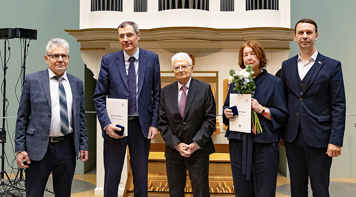 Александр Сергеев, Арутюн Аветисян, Юрий Оганесян, Наталия Тарасова, Григорий Трубников Как отметил Г.В.Трубников, из четырех ежегодных лауреатов один представляет зарубежное научное сообщество, хотя фундаментальная наука не имеет границ и национальности. "Лауреатом нашей премии стал замечательный французский ученый профессор Мишель Спиро, долгое время возглавлявший IUPAP, инициатор Международного года фундаментальных наук в интересах устойчивого развития. Он добился того, что на Генеральной ассамблее ООН объявили о проведении Международного десятилетия наук в интересах устойчивого развития. Мишель - член Ученого совета нашего Института, и церемонию его награждения мы провели на только что прошедшей сессии совета", - сказал Григорий Владимирович. А.М.Сергеев вспомнил, как "слушал лекцию М.Спиро, где он говорил, что фундаментальная наука не имеет национальности. Не имеют границ и науки, занимающиеся глобальными проблемами устойчивого развития, - изменением климата, пандемиями и другими. Решение, которое приняло жюри премии в этом году, - наша дань признания заслуг Мишеля Спиро". М.Спиро ответил на вопросы корреспондента газеты накануне, в перерыве заседания Ученого совета. Вы считаете, что фундаментальные науки могут влиять на устойчивое развитие? - Да, потому что фундаментальные науки движимы любознательностью, они наполняют банк знаний, которым будут пользоваться будущие поколения для решения проблем. Квантовая механика была создана на чистой любознательности, а 50 лет спустя мы смогли производить лазеры, транзисторы, стереофоны и всё остальное, чем мы пользуемся сегодня. Общая теория относительности Эйнштейна казалась чистой спекуляцией. Полвека спустя мы пользуемся GPS с общей теорией относительности. Наука открывает явления, предсказывающие технологии, которые улучшают нашу жизнь, служат человечеству. К сожалению, они могут использоваться и во зло. И уже человечеству нужно сделать выбор, как использовать технологии - для улучшения жизни или для ее уничтожения, они могут привести и к уничтожению мира. Вы более 20 лет сотрудничаете с ОИЯИ. Что вы почувствовали, когда узнали, что стали лауреатом этой премии? - Я безмерно горд, очень польщен, что стал лауреатом этой премии. Я высоко ценю это решение, потому что, во-первых, очень люблю Юрия Оганесяна. Он - очень яркий ученый, мудрый и обаятельный человек. Во-вторых, я счастлив, что эту премию получаю в ОИЯИ, с которым я сотрудничаю много лет. Я люблю Институт, поскольку здесь царит дух науки, движимой любознательностью и дух сотрудничества со всем миром. Здесь наука открыта для всех - все результаты публикуются, становятся доступны для любого человека, где бы он ни работал. Это хорошая модель, продвигающая сотрудничество и открытость, для решения проблем устойчивого развития. Коллаборативный подход открывает обмен со всем миром для борьбы с изменениями климата, за сохранение биоразнообразия, обеспечение чистой водой и пищей каждого человека, мира для всех. Не смог участвовать в церемонии А.М.Семихатов. Г.В.Трубников охарактеризовал его как прекрасного ученого и фантастического популяризатора науки, на лекциях которого в университете никогда не бывает свободных мест. А.М.Сергеев напомнил, что Алексей Михайлович Семихатов работает в таком "намоленном" месте, как отделение теор