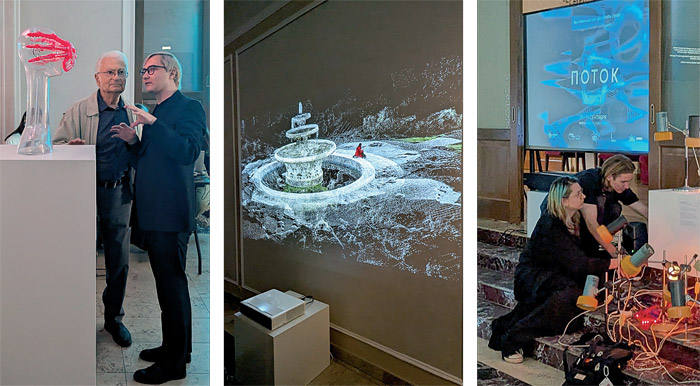 Vernissage Spirit of an explorer, soul of an artistOn 12 - 14 September, the Cultural Centre "Mir" hosted the technological art exhibition "Potok". Its authors were students and graduates of ArtTECH at the National University of Science and Technology MISIS, Moscow's first master's programme where new projects at the intersection of science, art and technology are born.For ten days, within the framework of the "Dubna laboratory" expedition, students explored the basic facilities and departments of the Joint Institute for Nuclear Research, as well as the city's history and landmarks. On 13 September, a meeting was held at the Scientists' Club, where our guests discussed their understanding of technological art, why they had chosen this field and their investigations. In their master's programme, they learn to work with neural networks, robots, VR and AR technologies, CNC machines, 3D printers, projection technologies and music design. Their projects embody their artistic vision, understanding of reality, associations and imagination. The exhibition projects are billed as "a synthesis of contemporary art and cutting-edge science in the form of multimedia installations, interactive objects and sound performances". All of them require careful investigation, listening to the accompanying soundtrack, or listening to the authors' explanations. For example, "Artist's marmalade" was created using the artists' own cells - collagen extracted from them was used to create the gummy hearts. Thus, living material becomes a tool for physical expression. The installation "Whisper of pain" demonstrates the psychosomatic impact of harsh and aggressive phrases on the human body. The "Anatomy of air" project makes the process of breathing visible - the air acquires color, texture and movement. The Dubna expedition also gave birth to new ideas. One of them related library shelves with electronic circuit boards, displaying copies of the journal "Mathematics and Physics" and table lamps from the Dubna Hotel, remnants of the old interiors. The audience's reaction to such innovative ideas was predictable: from a confused "I don't understand anything here" to a sarcastic "So what?" Nevertheless, visitors lingered at the stands for long periods, listening, examining and asking questions. This is how inspiration is transmitted, ideas and relations are born. This is how physics was once developed - from attention to detail, observation and experimentation.