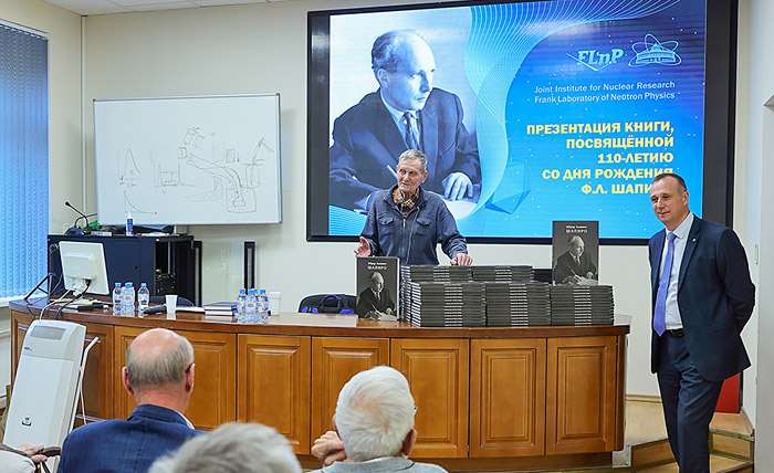 THEIR NAMES are in the history of the Institute He is not forgottenOn 9 October, at a FLNP seminar, a book-album from the biographical series "Portrait against the background of an era" was presented. It was published to commemorate the 110th anniversary of the birth of one of the laboratory's founders, Fedor Lvovich Shapiro. At the seminar, A.I.Frank presented the overview "Ultracold neutrons: from discovery to the present day" and A.V.Strelkov's talk was entitled "F.L.Shapiro and the discovery of ultracold neutrons".Welcoming the gathered staff and guests, Laboratory Director E.V.Lychagin recalled that F.L.Shapiro's anniversary was celebrated with a laboratory-wide seminar on 10 April. Young FLNP staff members, winners of the F.L.Shapiro scholarship presented their scientific papers and V.I.Furman introduced the young people to his scientific biography. "We were going to publish an album by this date but we didn't have time, so we postponed the presentation until autumn," E.V.Lychagin explained. "Since Fedor Lvovich's name is associated with ultracold neutrons (UCN), we decided to dedicate this seminar to UCN research in Dubna and around the world." He added that D.Chudoba, then FLNP Scientific Secretary, was the first to express the idea of publishing a book-album last November. M.A.Lukichev, Director of the RMP publishing house where the book was published, has been collaborating with JINR for many years; his team has created a series of albums about the Institute's significant figures. He was unable to attend the seminar but V.M.Hamburg, an employee of the publishing house, spoke about the work on the book. "It was very easy for me to work; almost all the materials were provided immediately that is rare," Victoria Markovna shared. "I want to thank Walter Ilyich Furman and Alexander Vladimirovich Strelkov for their very active and fruitful collaboration. I'm very glad the album wasn't released in April. Active work on it began in January and releasing a high-quality edition by April was unrealistic." The book turned out to be a worthy one, capturing the spirit of the times well and revealing the kind of person Fedor Lvovich was. We took most of the memoirs from the 2019 edition, contacted the Institute of Physics of the Russian Academy of Sciences for his personal file and Fedor Lvovich's daughter provided archival photographs. Almost all of them were of poor quality, so I was responsible for the restoration and processing of the photographs. This was my first attempt at using artificial intelligence for this purpose and I think it turned out well. I'm pleased with our work and I hope you'll enjoy holding the album in your hands."
