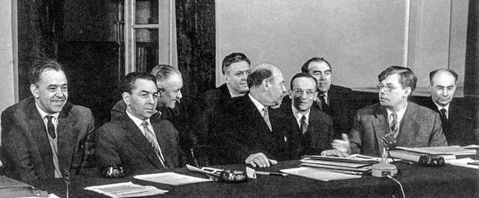 Vice-Director M.Danysh, Director of DLNP V.P.Dzhelepov, Vice-Director V.Votruba, Administrative Director of JINR V.N.Sergienko, Director of JINR D.I.Blokhintsev, Director of LHEP V.I.Veksler, Assistant Director of JINR A.M.Ryzhov, Director of BLTP N.N.Bogolyubov, Director of FLNR G.N.Flerov The world's leading theorists received invitations to work for two or three months, to lend the Institute a European polish and raise its level. Yang, Lee, Feynman, Gell-Mann, Yukawa - what names! And also, Peierls, Schwinger... Only Weisskopf responded: unfortunately, he couldn't. The "brotherhood of physicists" that developed in the 1920s and lasted until the second half of the 1930s, as Dmitry Ivanovich had dreamed, was unfortunately not revived.