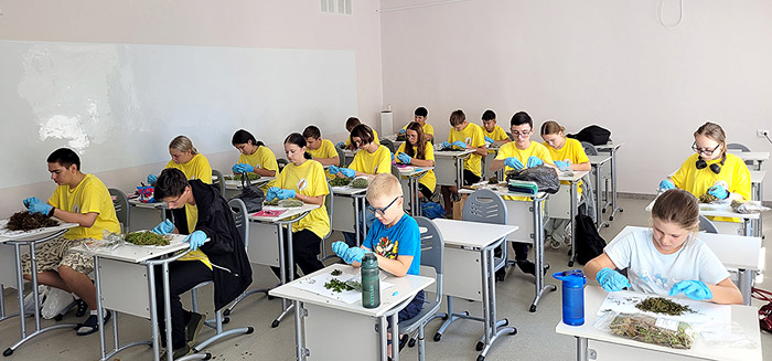 При участии начальника сектора нейтронного активационного анализа и прикладных исследований ЛНФ Инги Зиньковской и преподавателей ДВФУ школьники осваивали методы подготовки материала к экспериментам, а также знакомились с принципами анализа почв. На занятиях ребята проводили эксперименты на электронном активаторе и учились определять виды мхов, используемых в качестве природных индикаторов состояния атмосферы, которые собрали ранее в своих населенных пунктах. На следующем этапе элементный состав мхов будет определен в ЛНФ методом нейтронно-активационного анализа, затем совместно со школьниками ученые опишут полученные данные.