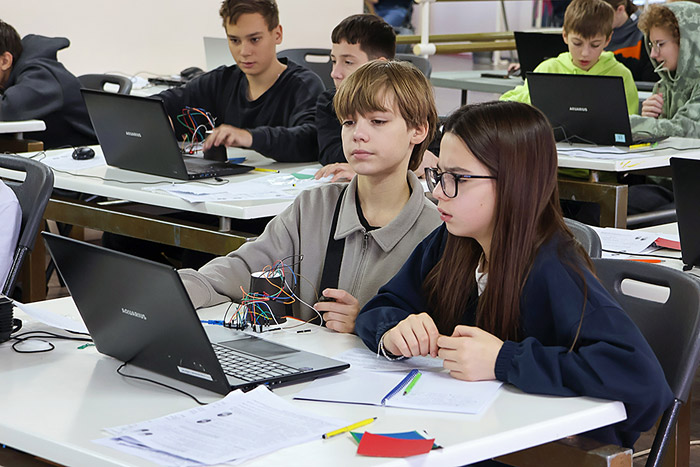 Среди 5-х классов победителями стали команды школы №3 (Александр Авилов, Виктория Копылова, Филлип Габров и Вероника Белевцова, наставник - Е.Н.Конограй) и школы №10 (Полина Теплякова, Георгий Максимов, Тимофей Теплов и Ксения Саутина, наставник - О.Е.Оканева). Среди 6-х классов лучшими оказались команды лицея "Протвино" (Екатерина Клянчина, Федор Мошков, Матвей Березовский, Глеб Богданов, наставник - Е.А.Рыбакова) и команды "Образовательный комплекс имени Храброва" (София Екимова, Евдокия Костюченко, Анастасия Судакова и Виктория Степаненко, наставник - М.И.Гермек). Эти четыре команды получили приглашения на финал программы, проведение которого запланировано на апрель 2026 года в рамках фестиваля "Дни Физики". Все участники марафона, включая 14 учащихся старших классов школы №10 - волонтеров, которые помогали педагогам организовать работу на станциях, получили подарки от представителей ОИЯИ. Всего на мероприятии присутствовали 66 школьников и 14 педагогов. 2-й отборочный тур Технического хакатона прошел 15 и 16 ноября в помещении ДК имени В.И.Ленина. Участвовали 12 команд (по два учащихся 6-7-х классов) из 9 учреждений образования Серпухова, в том числе двух новых районов - Оболенска и Дашково. Участники знакомились с основами 3D-моделирования и робототехники (на платформе Arduino), проектировали и собирали автономное устройство по определению цвета предмета, отлаживали его работу. Победителями 2-го отборочного тура Технического хакатона стали три команды: представители лицея "Протвино", выполнившие больше всех заданий, (Василий Филимонов и Владимир Курышев, наставник - М.В.Савченкова), команда "Дашковская СОШ" (Андрей Никитин и Эмиль Хамраев, наставник - А.Н.Ушаков), команда "Центр непрерывного образования" (Алексей Богачев и Ангелина Болдина, наставник - С.Н.Федотова). Также жюри отметило работу команды робоклуба "Серпухов" из Оболенска (София Зароченцева и Дарья Зуева). Все четыре команды допущены до финала хакатона, который состоится в апреле 2026 г. в Дубне, и получили в подарок от организаторов собранные устройства. Участники хакатона также получили памятные подарки от ОИЯИ. В организации мероприятия заметную помощь оказали преподаватель технологий школы №10 С.А.Малинников и учащийся 11-го класса лицея "Протвино" Александр Непогодин. Делегация Дубны, посетившая Серпухов, выражает искреннюю благодарность руководству школы №10 в лице ее директора Е.В.Тиханович за прекрасную организацию всех мероприятий программы. Петр ШИРКОВ, | ||||||