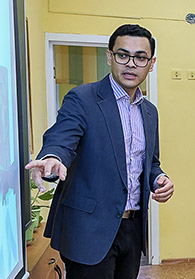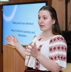 "Я знала, что Институт реализует множество проектов по продвижению мультикультурализма, и понимала, что придет и мое время рассказать о своей национальной культуре. Первым таким мероприятием стал "Английский без границ". Я рада, что Институт оказал мне доверие, позволив представлять его и свою страну. Подготовка доклада, не являющегося научным отчетом, оказалась непростой задачей. Мне пришлось изменить манеру общения, подачу информации и организовать всё в педагогическом ключе. Хотелось провести интересный урок, а не просто отчет. Я приготовила разные вопросы в формате квиза и просила детей высказывать свое мнение. В карьере ученого, на мой взгляд, преподавание играет важную роль, и я хочу быть готова к моменту, когда превращу молодого человека в уважаемого специалиста. Участие в этом проекте улучшило мои педагогические навыки. Мне задавали вопросы о моем мнении о России, о схожести и различии в сравнении с Румынией, какой совет я могу дать молодому человеку, мечтающему стать ученым, как я решила приехать в Россию, сколько языков и какие мы изучаем в Румынии. Мы прекрасно провели время, я даже получила от них комплименты. Самым неожиданным было услышать, что я красивая. Мы обменялись позитивной энергией, я чувствовала себя очень хорошо во время выступления, вопросы продолжались и после звонка. Это был замечательный опыт, и я с удовольствием повторила бы его". Научный сотрудник ЛНФ Эльмекави Ахмед Хассан Абдельрахман из Египта: "Я хотел бы выразить благодарность за предоставленную мне возможность участия в проекте "Английский без границ", это было очень интересное событие. Думаю, что большинству учеников моя презентация понравилась. Я видел, что дети не отворачивались от доски, пока я говорил. А также они задали мне много вопросов после выступления. Меня спрашивали об образовании в Египте, какие языки там изучают, из какого города я приехал, какое мое любимое египетское блюдо, есть ли круизы по Нилу, какие у меня хобби, сколько лет я прожил в России и как выучил русский язык. Я немного нервничал, но был рад получить опыт выступления перед школьниками. Если проект продолжится, то я с удовольствием поучаствую снова".